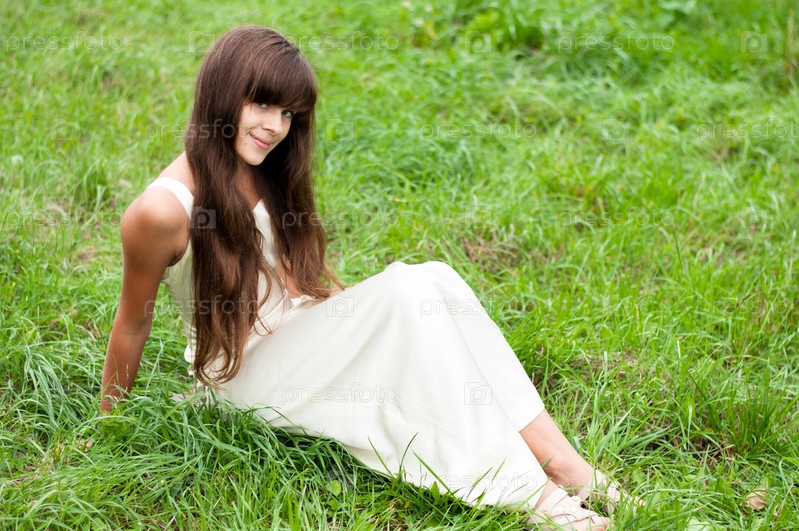 Девушка в белом платье на природе