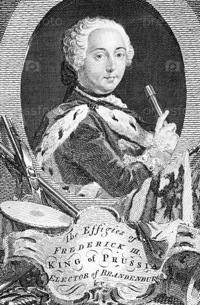 Фридрих I (1657-1713) на гравюре 1700-х годов Курфюрст Бранденбурга (1688-1713) и герцог Пруссии Фридрих III и первый король Пруссии (1701-1713) как Фридрих I