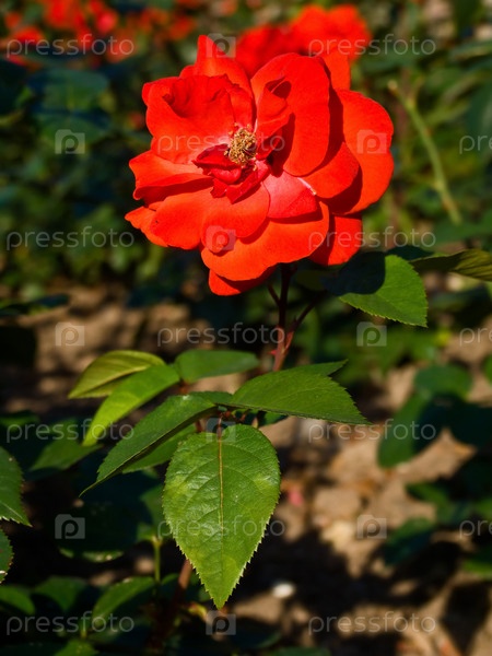 Красная роза в саду
