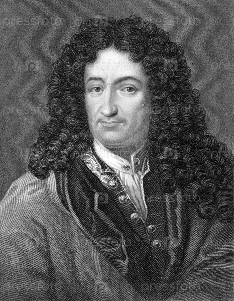 Готфрид Вильгельм фон Лейбниц (1646-1716) на гравюре 1800-х годов. Немецкий философ, ученый и математик