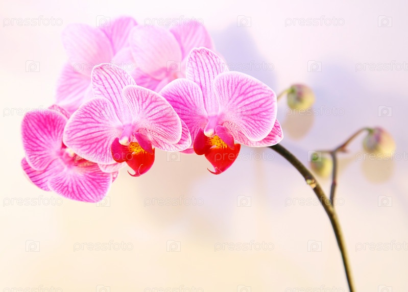 Розовая орхидея с прожилками и тенью на белом фоне