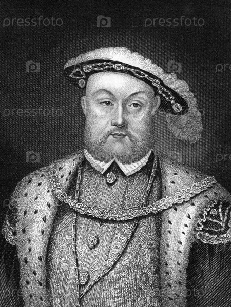 Генрих VIII (1491-1547) на гравюре 1830 года Король Англии в период 1509 - 1547 гг. Изданный в Лондоне Томасом Келли