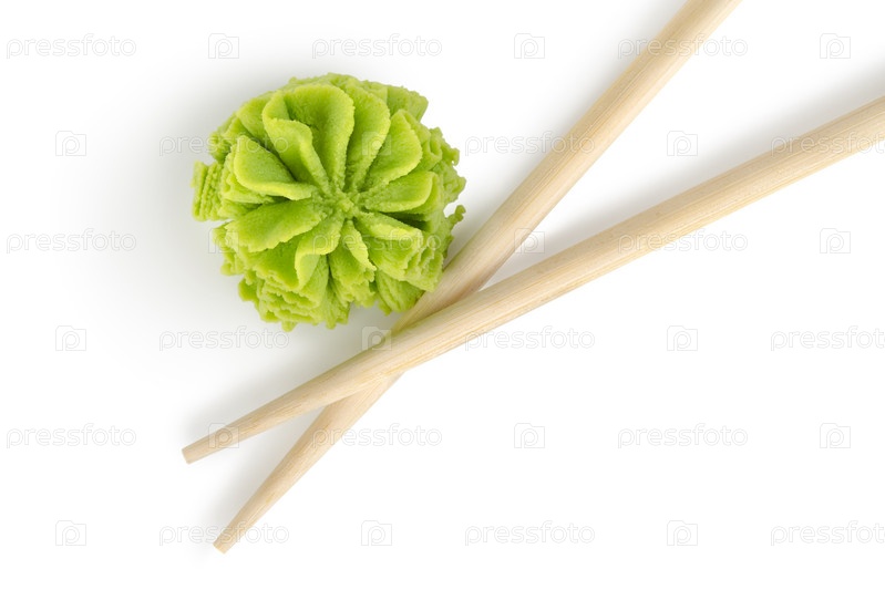Деревянные палочки для еды и васаби, изолировано