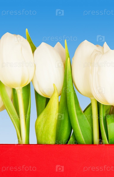 Белые тюльпаны на синем фоне