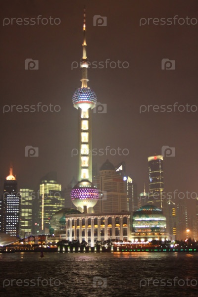 Телевизионная башня "Восточная жемчужина" на набережной в Шанхае