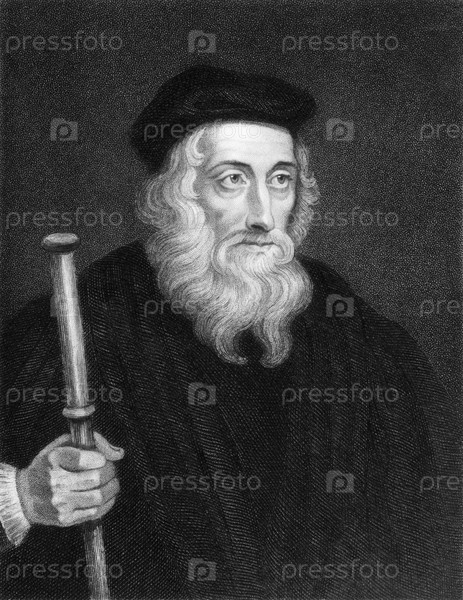 Джон Уиклиф (1320-1384) на гравюре 1833 года Английский богослов, проповедник, переводчик, реформатор и преподаватель университета Выгравирован Д. Поффсельвайтом и опубликован в Галерее портретов с воспоминаниями, Чарльз Найт, улица Ладгейт, Лондон