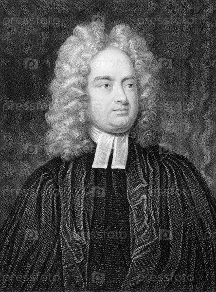 Джонатан Свифт (1667-1745) на гравюре 1833 г. Ирландский писатель-сатирик, эссеист, политический публицист, поэт и священник. Опубликовано в Галерее портретов с воспоминаниями