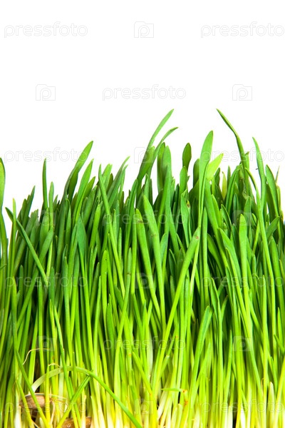 Зеленая трава на белом фоне