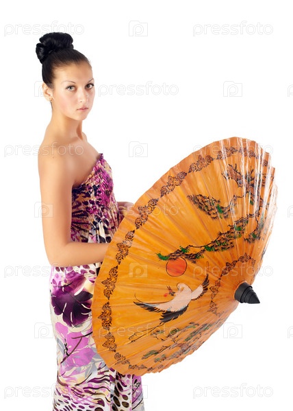 Привлекательная девушка с зонтиком
