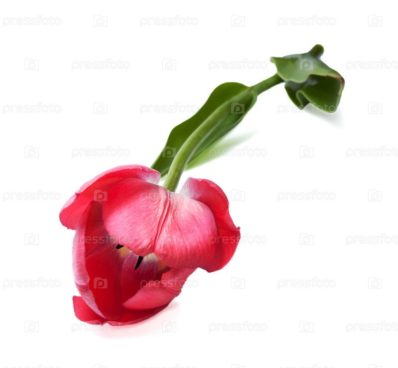 Розовый тюльпан на белом фоне