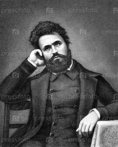 Юлиус Фробел (1805-1893) на гравюре 1859 г. Немецкий журналист, дипломат и автор. Выгравировано Нордхаймом и опубликовано в Энциклопедии Майерса, Германия, 1859