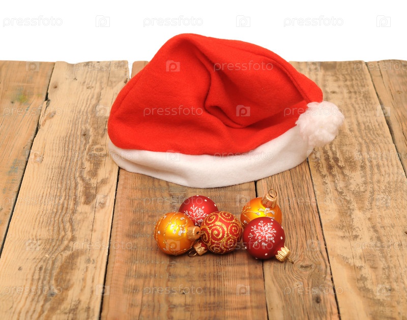 Рождественские шары и колпак Санта-Клауса