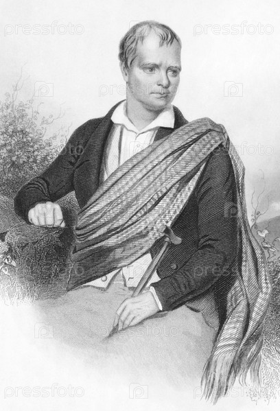 Уолтер Скотт (1771-1832) на гравюре 1800 г. Шотландский исторический писатель и поэт, выгравированный А.Х. Пейном и опубликованный в Лейпциге