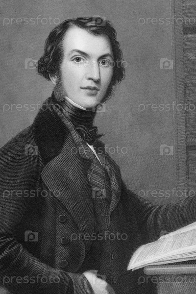 Уильям Юарт Гладстон (1809-1898) на гравюре 1837 г. Британский либеральной государственный деятель. Гравюра В.Х.Моута с картины Северна, опубликованная Г.Виртью