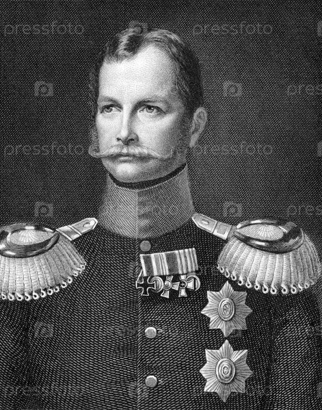 Вильгельм I, немецкий император (1797-1888) на гравюре 1859 года Король Пруссии в период 1861−1888 и первый германский император 1871−1888 г. Гравюра А. Вегера, опубликованная в Энциклопедии Майерса, Германия, 1859