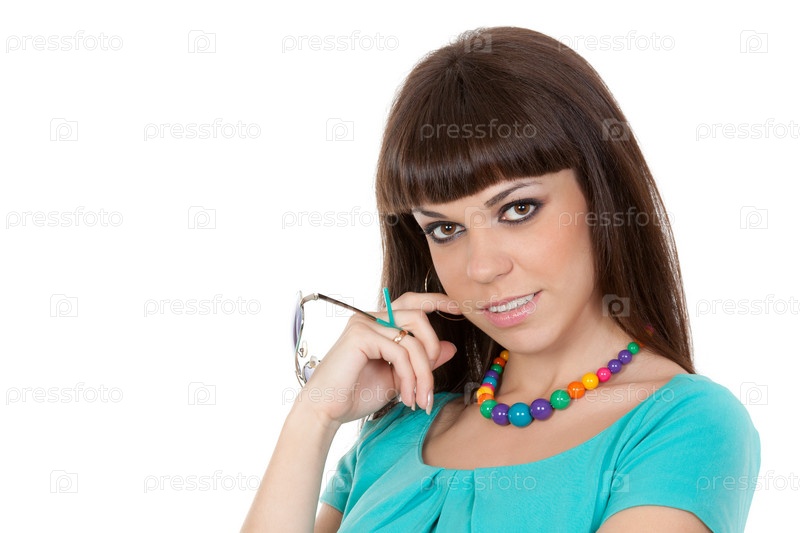 Красивая девушка с очками в руке