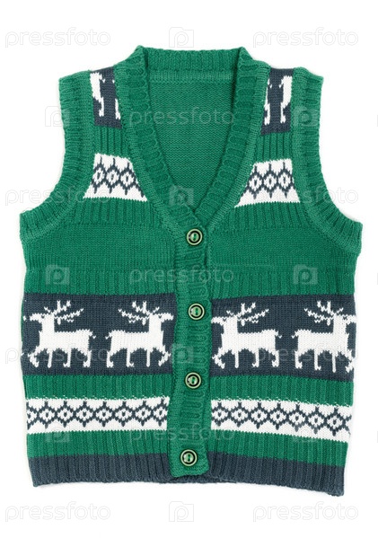 Вязаный жилет с рожденственским орнаментом (с оленями)