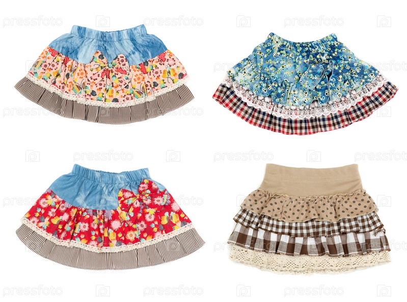 Коллаж из четырех мини-юбок, изолированных на белом фоне