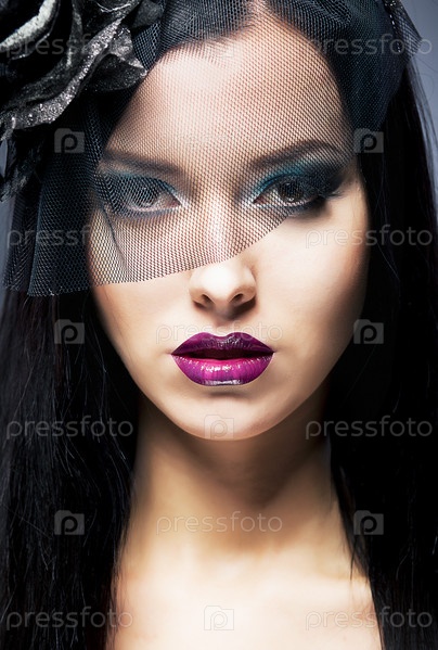 Портрет молодой грустной женщины с черной траурной вуалью