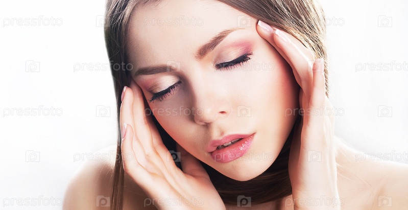 Сказочная красота - лицо молодой женщины, естественный макияж. Мигрень