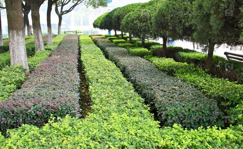 Газоны в парке. Парк города Сучжоу. Китай