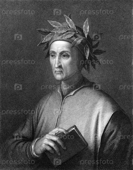 Данте Алигьери (1265-1321) на гравюре 1837 года. Итальянский поэт средневековья