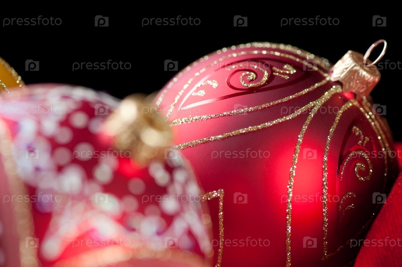 Елочные шары на черном фоне, крупный план