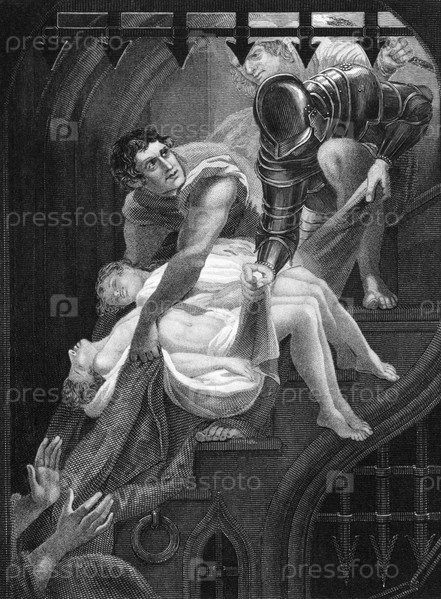 Убийство двух князей, сыновей короля Англии Эдуарда IV в 1483 году на гравюре 1800 года