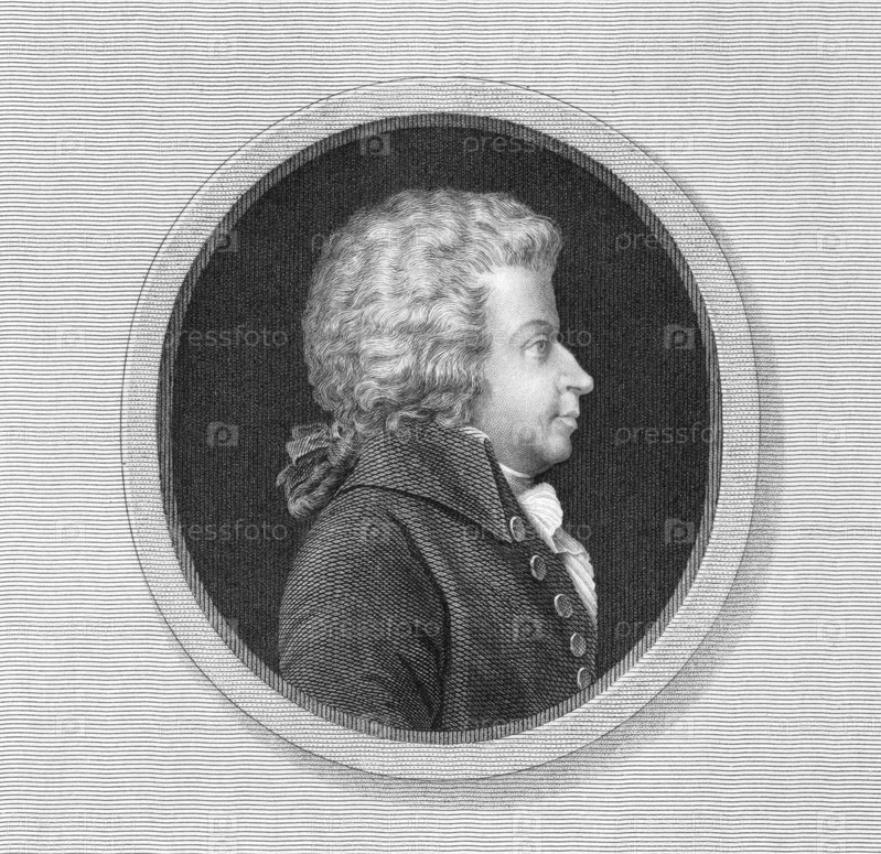 Вольфганг Амадей Моцарт (1756-1791) на гравюре 1835 года. Один из наиболее значительных и влиятельных композиторов классической музыки