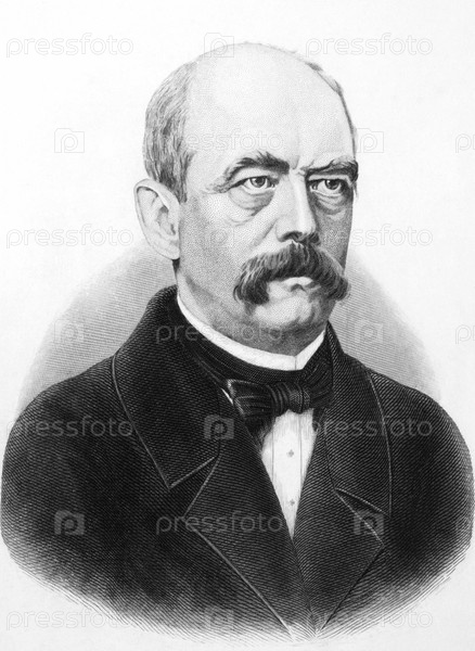 Отто фон Бисмарк (1815-1898) на гравюре 1800-х годов. Прусский германский государственный деятель и аристократ