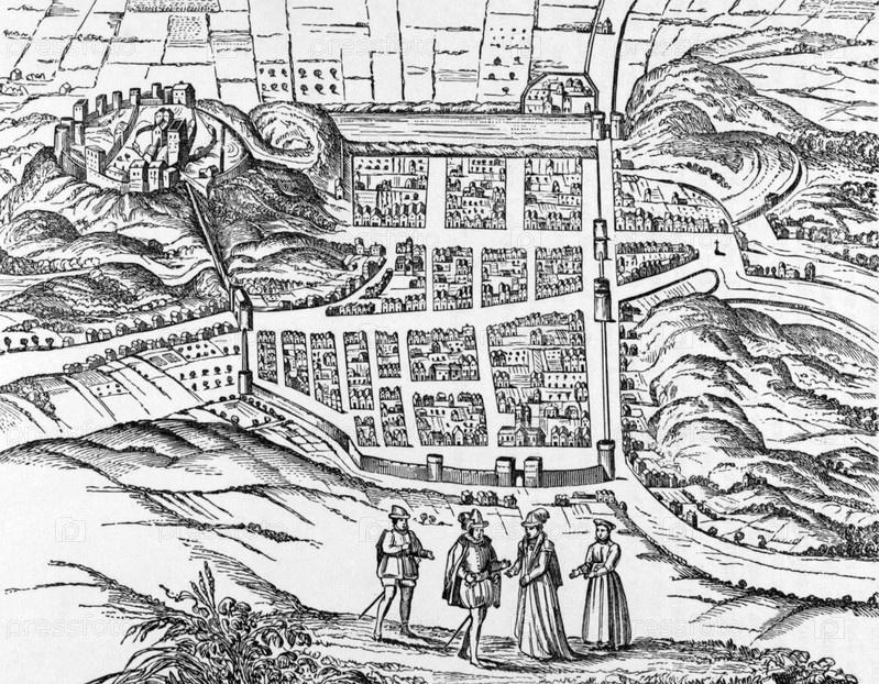 План Эдинбурга с отпечатком начала XVII века на гравюре 1800-х годов