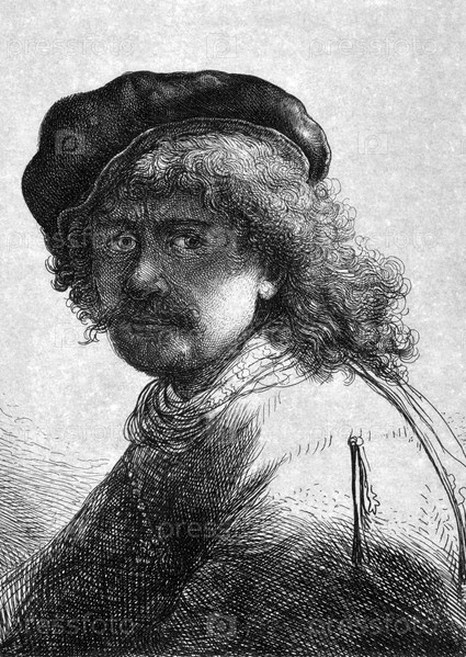 Рембрандт (1606-1669) на гравюре 1859 г. Нидерландский художник и гравер