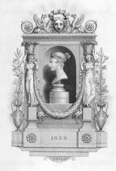 Королева Виктория (1819-1901) на гравюре 1800 гг. Королева Великобритании в 1837 — 1901 гг