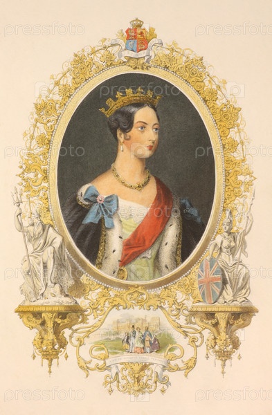 Королева Виктория (1819-1901) на гравюре 1800 гг. Королева Великобритании в 1837 — 1901 гг