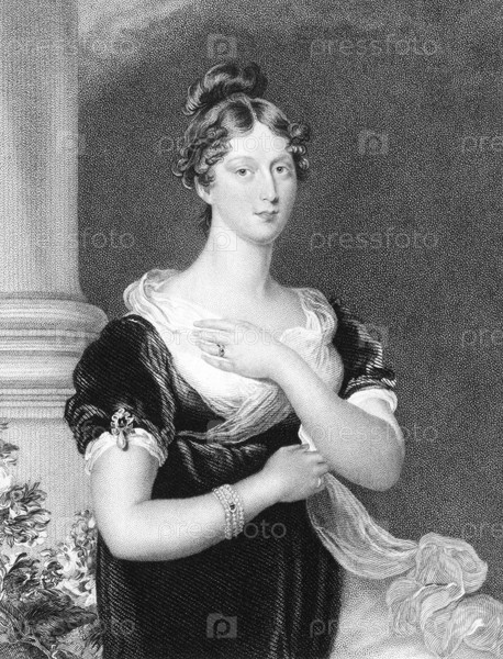 Принцесса Уэльская Шарлотта Августа (1796-1817) на гравюре 1847 года