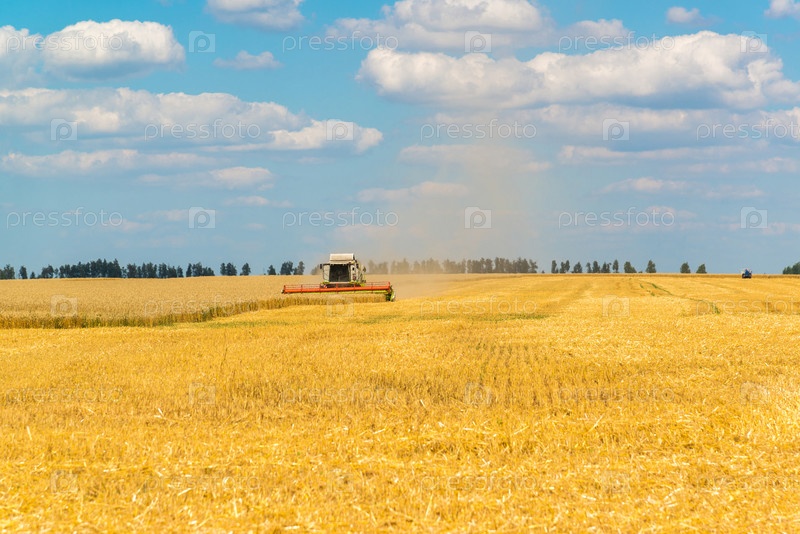 Сельскохозяйственная техника убирает зерновые культуры с поля