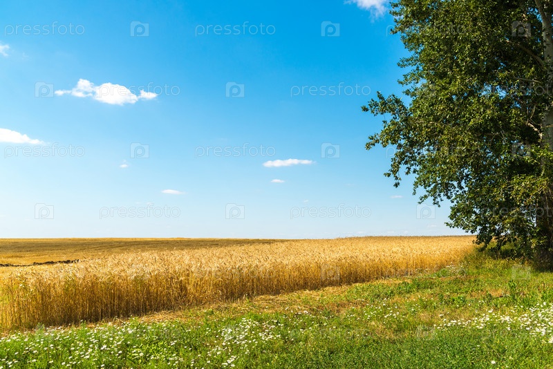 Край желтого пшеничного поля в солнечный день