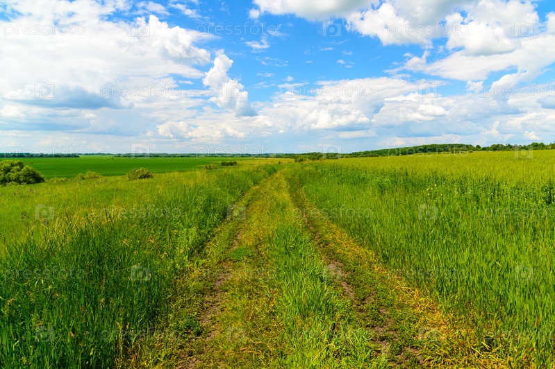 Проселочная дорога среди зеленой травы в России