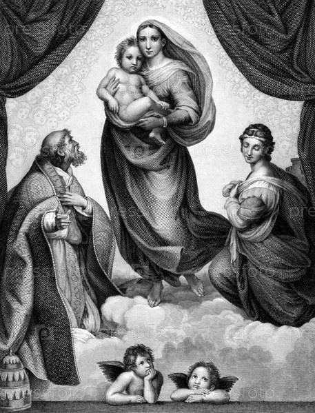 Сикстинская Мадонна на гравюре 1859 года, нарисована Рафаэлем