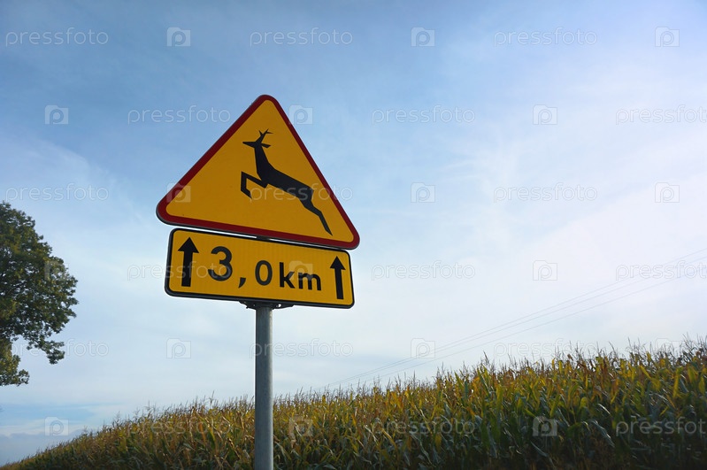 Дорожный знак предупреждения «остерегайтесь животных, пересекающих трафик»