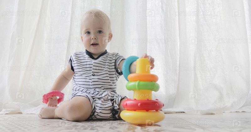 Прелестный ребенок играет с игрушками