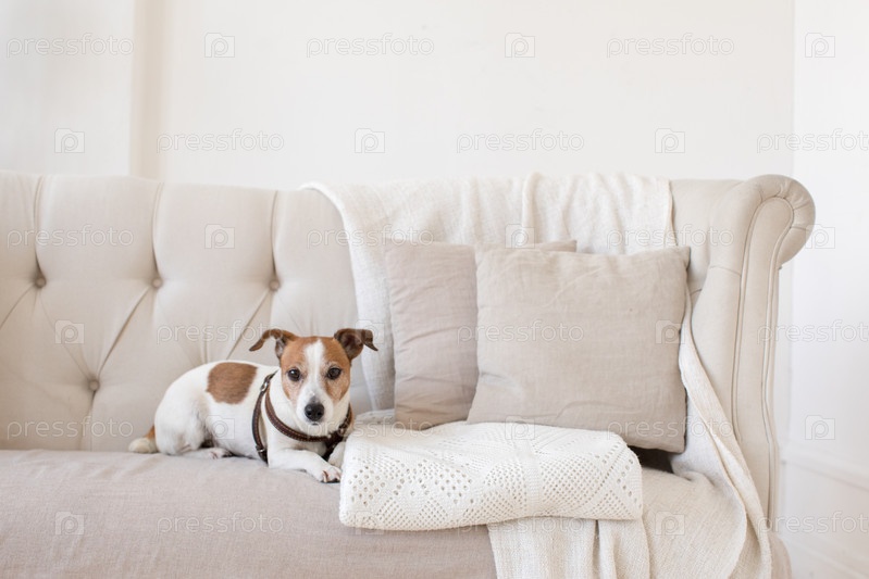 Маленькая собачка на диване