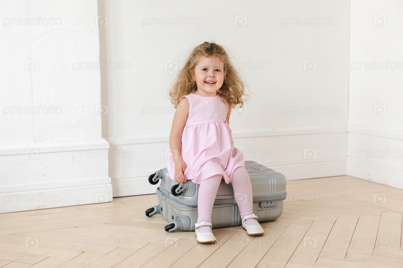 Прелестная девочка на чемодане