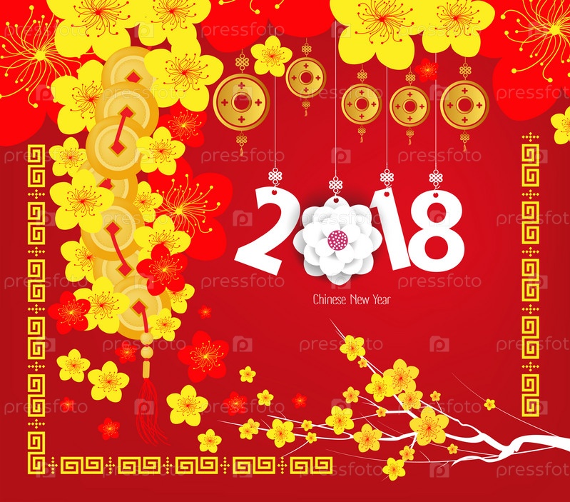 Счастливый китайский новый год 2018 открытка