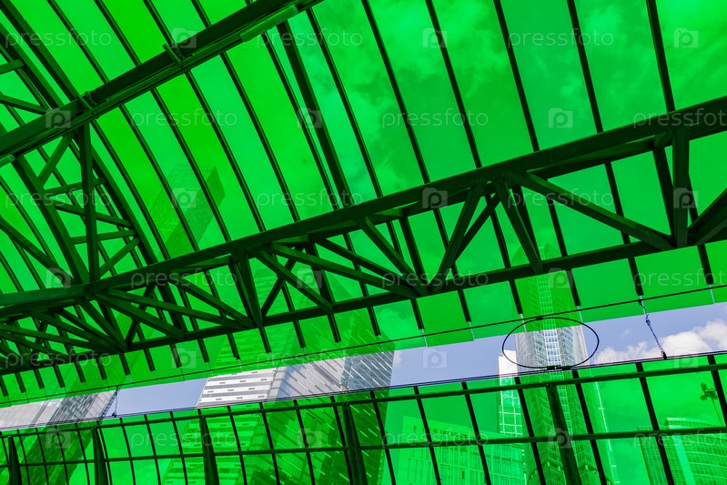 Небоскребы за зеленым стеклом