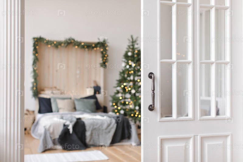 Прекрасный интерьер спальни перед Рождеством