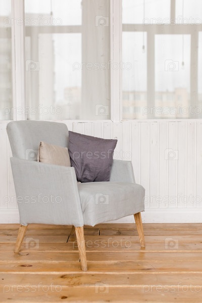 Удобное серое кресло в комнате