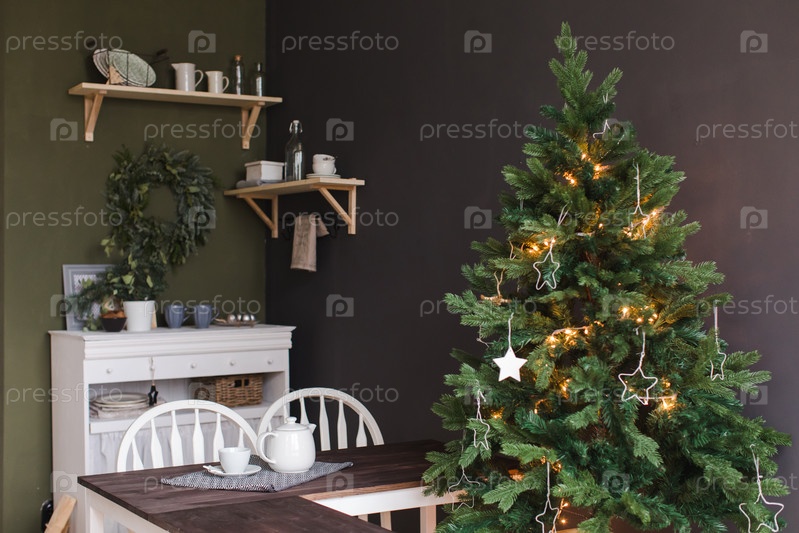 Интерьер современной маленькой кухни на Рождество