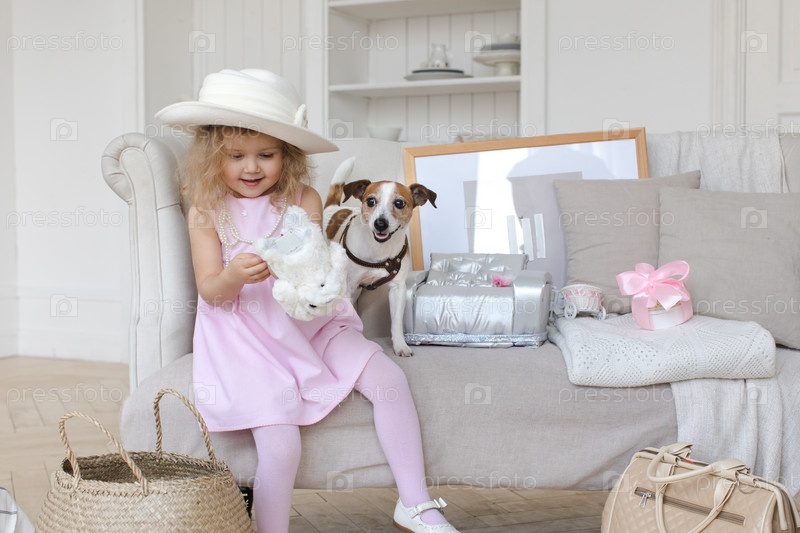 Девочка играет с собакой