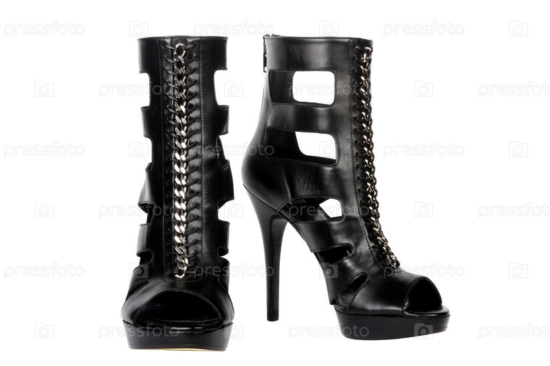 Черные женские ботинки на высоком каблуке, изолированные на белом фоне